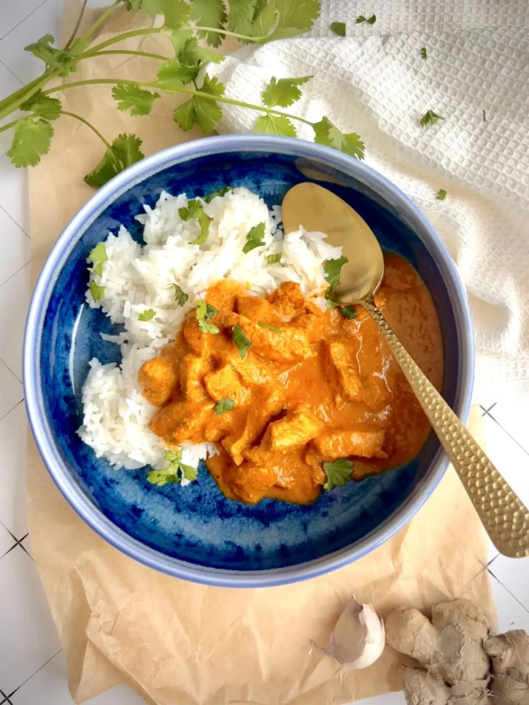 Butter Chicken Curry gehört zu den Gerichten, die man einmal probiert – und nie wieder vergisst. Dieses indische Hähnchen-Curry mit Kokosmilch ist cremig, würzig, einfach gemacht und kommt ganz ohne Sahne aus.